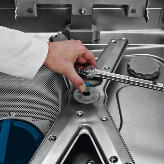 Per facilitare il lavoro, il sistema CLIP-IN permette di rimuovere i bracci di lavaggio e di risciacquo in un’unica operazione. Dopo la pulizia, l’elemento viene reinstallato con un solo clic.
