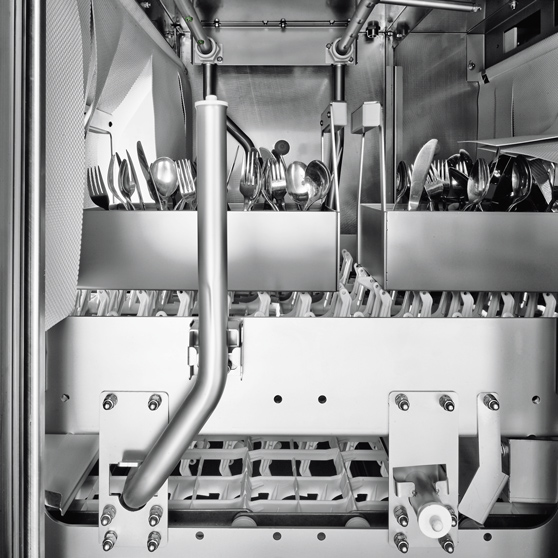 La raccolta separata e l’ammollo delle posate fanno perdere tempo, rallentano e ostacolano il processo di lavaggio. Il ciclo posate opzionale mette fine a tutto questo. Cesti studiati specificamente per le posate e sensori intelligenti permettono alla macchina di identificare automaticamente le posate. Il sistema di lavaggio adatta poi automaticamente i parametri di lavaggio e risciacquo in modo da ottenere un risultato ottimale.
