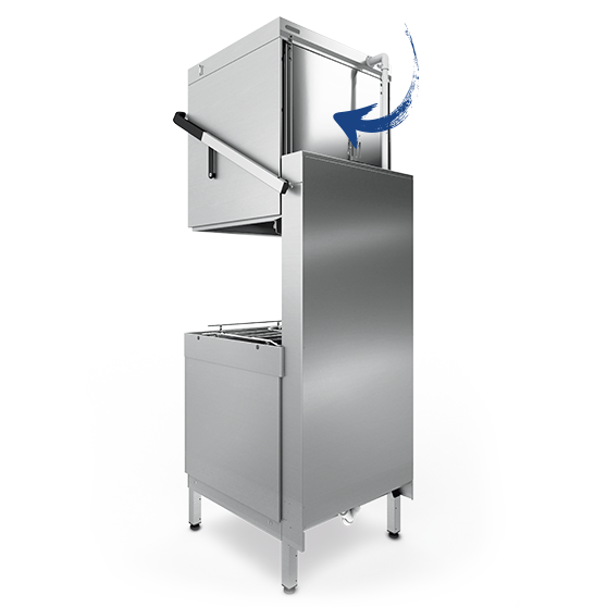 Facilità d'uso, risparmio di tempo ed efficienza in cucina sono per noi valori tanto importanti quanto lo sono la riduzione del consumo di energia, acqua e detergenti. La nuova lavastoviglie a capote è stata sviluppata per tagliare i costi operativi riducendo al minimo la quantità di energia persa, ma anche recuperando energia dal vapore e dall'acqua di scarico. Grazie a un sistema di pulizia integrato e alla rimozione automatica dello sporco si ottengono risultati di lavaggio ottimali e igienici; i costi si riducono in quanto alcuni dei processi di prelavaggio non sono più necessari e il tempo dedicato alla pulizia della macchina può essere abbreviato.