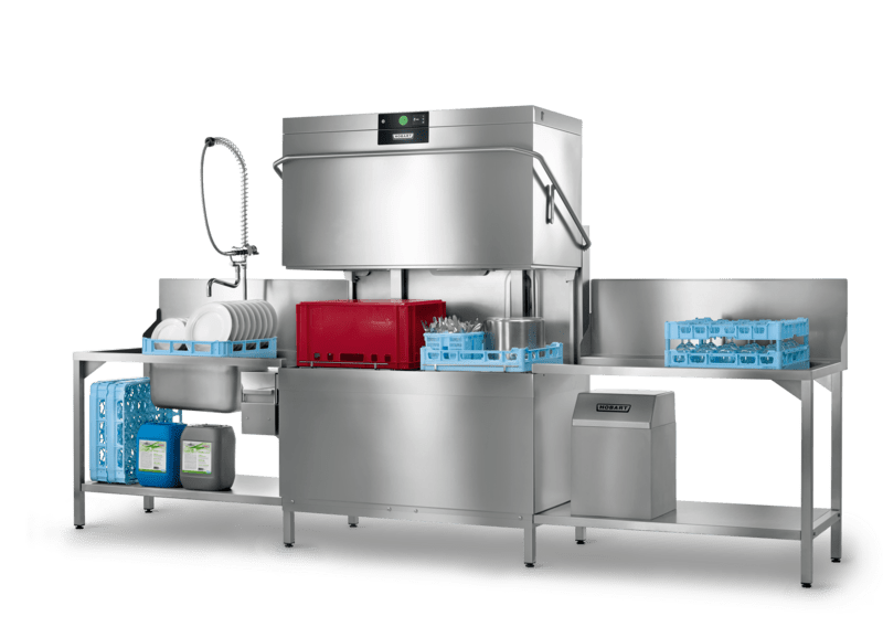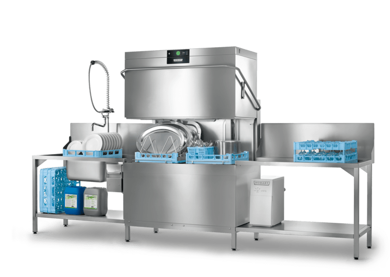 (Opzionale) Sollevamento automatico della capote: Semplicità d‘uso e risparmio energetico: con il sistema di sollevamento automatico della capote di HOBART, opzionale, è possibile chiudere la lavastoviglie a capote semplicemente premendo un pulsante. Dopo il lavaggio, la capote si apre automaticamente