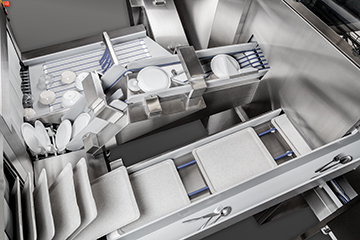 Il grado di automazione dei processi di un retrocucina dipende non solo dal tipo e dal volume di stoviglie da lavare. L’automazione aumenta sempre l’economia e allevia la fatica del personale.