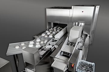 I sistemi di lavaggio automatici non richiedono l’intervento del personale per caricare le stoviglie sporche nelle lavastoviglie a nastro.