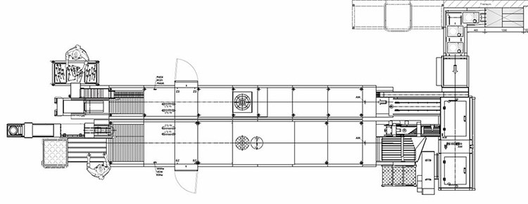 Sono formati da un’unità automatica di separazione, una lavastoviglie a nastro FTNi per vassoi e posate e una lavastoviglie a nastro FTNi molto grande con guida a nastro separata per ciotole e piatti.